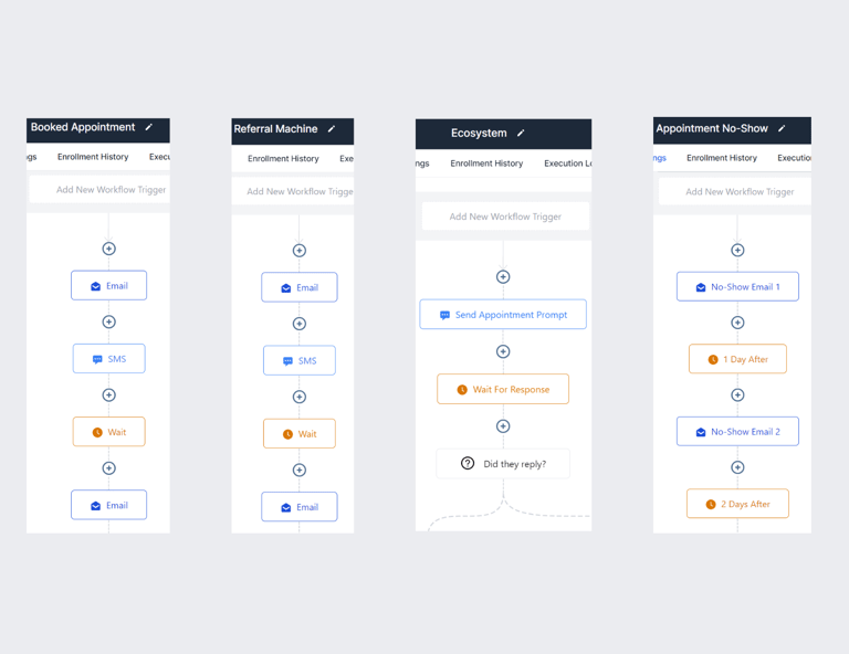 We have a whole overarching customer journey automation system through which we deploy proven-free email and text campaigns to your prospects who don’t close or don't show up. Maximising every single appointment you get! And also, through our referral machine, we can convert 1 client to 2-4-6-8-12...